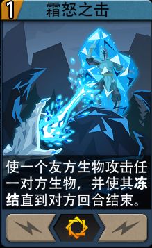 霜怒之击:使一个友方生物攻击任一对方生物,并使其冻结直到对方回合结束。