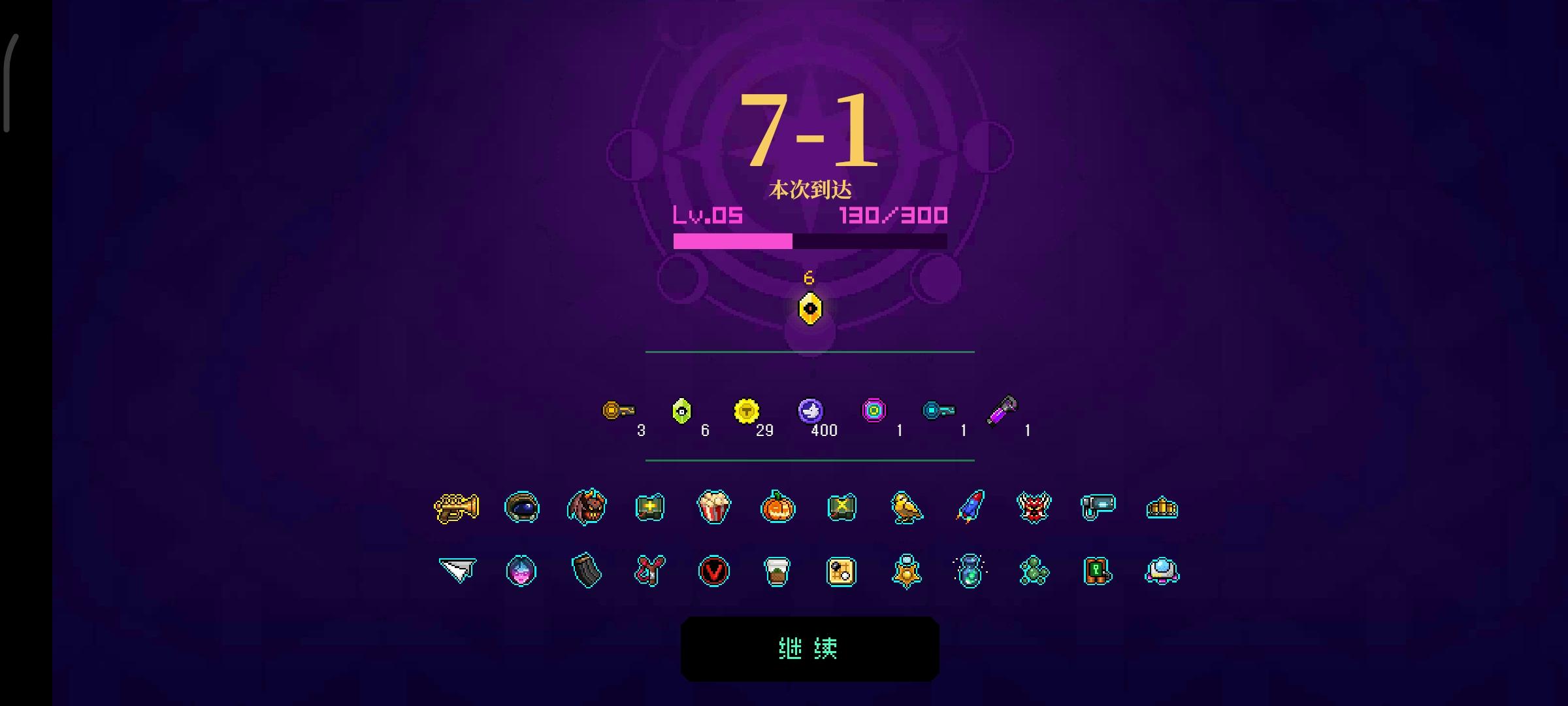 懒得打了,7-1退出了。后期就是那个虚化怪比较恶心能免伤贴脸秒我。其他小怪乱杀。总感觉伤害丢失的好严重,尤其武器升级的装备。后面全都显示武器只有一级了。