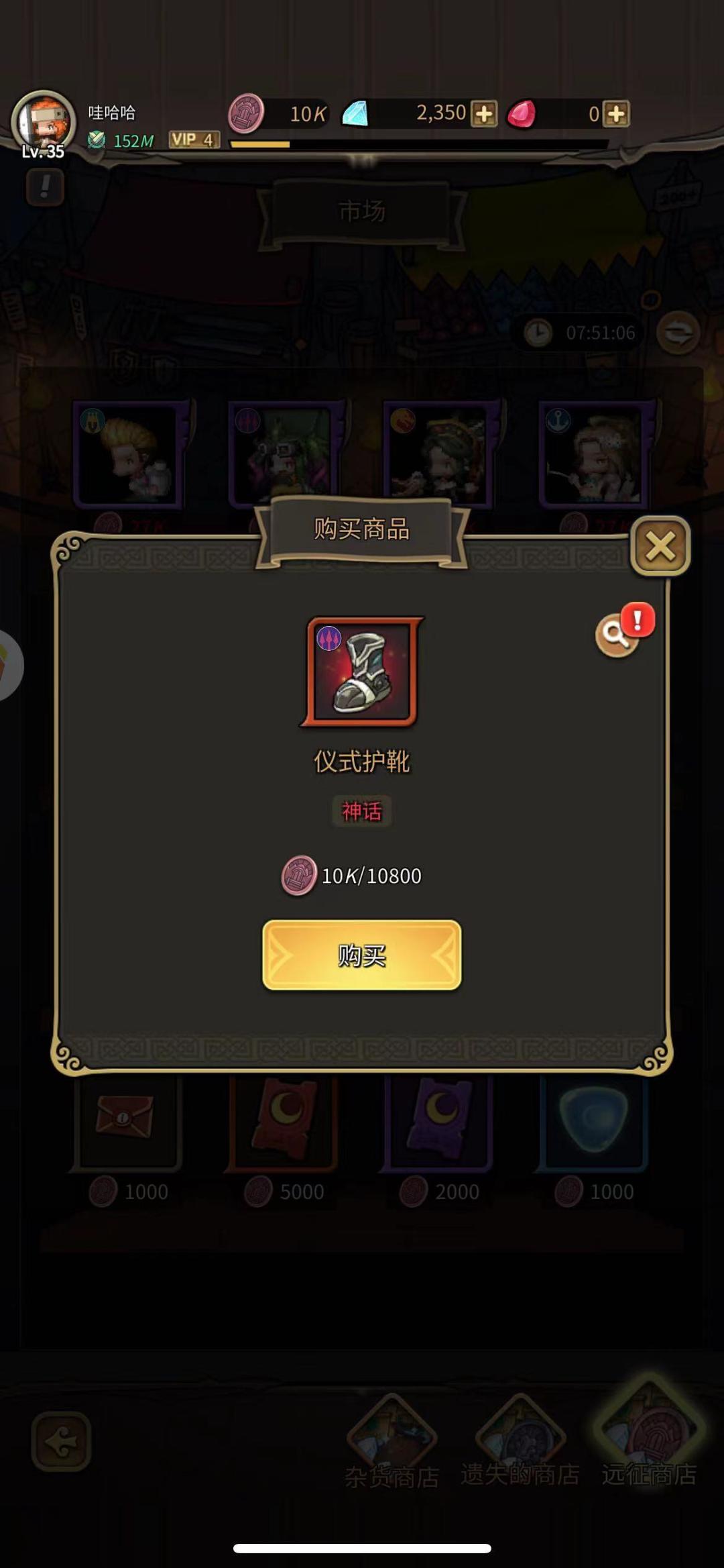 我觉得远征商店的神话仪式护靴不错,远征币也攒够了,刚好装备角色。大家不知道什么装备适合哪个角色,可以点击右上角的放大镜系统有推荐。