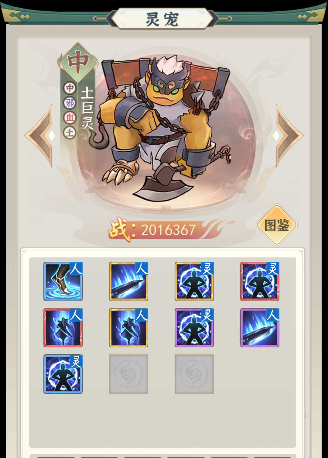 2.接下来说一下宠物选择,首选土木巨灵,就因为血高能抗,没别的原因。培养升星的话,就升一只主要培养。等宠物池5倍再抽。再来说一下打技能,主宠有命训打个命训,加30w血呢,有震颤打个震颤,全体速度降低20%,其他的位置和副宠的位置,全打光环,速度,生命,攻击,这三种光环就不多说了,万金油,如果还有多余的位置,打几个闪避光环,