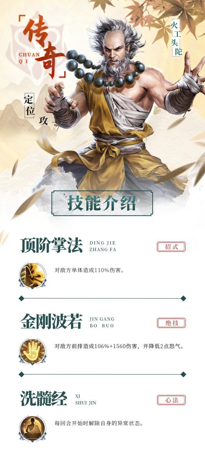 :本是少林寺烧火僧,因常受同寺僧人欺辱而偷学武功二十年终至大成,在击杀达摩堂首座及一众武僧后离去,于西域自创金刚门。