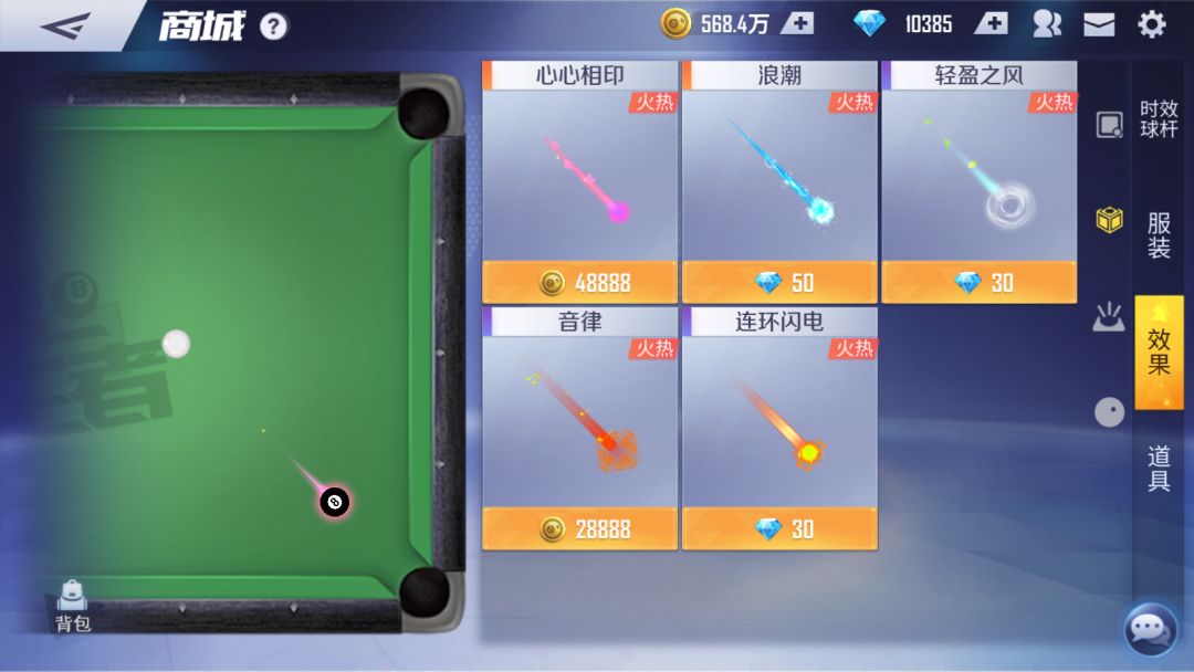 再看商城,本次共计更新了五种拖尾,可以和球杆皮肤等自由搭配哦~