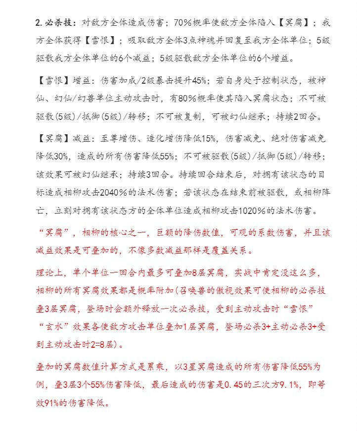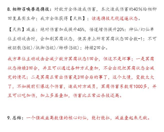 更正一下,相柳不一定非得主核,在有另一个强力幻仙的前提下(比如3星以上文鳐),相柳给副核打辅助不停挂腐冥效果也不错,可能比直接给主核更强,具体自行尝试,主副核幻仙互换一下位置又不是啥麻烦事。