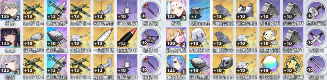 关于调速,建议都实战试试,毕竟每个人的科技加成和誓约情况不一定是一样的,我是满装填无誓约,像我带海伦娜的时候,要带信标,不然白龙第二轮可能吃不上海妈buff,不过正常的话是将其中一架Ju换成彩云,而不是考虑带信标,我这么带是方便和大世界的奥古斯特调速。