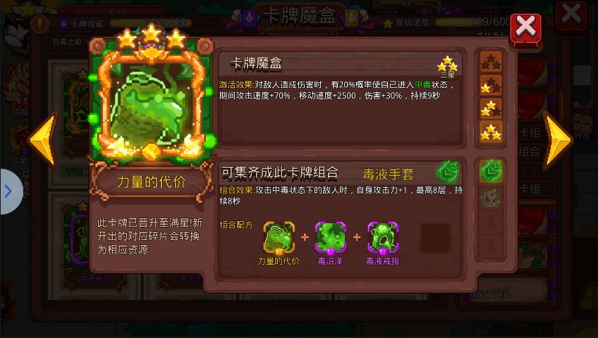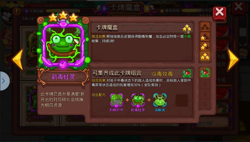 提示:当你与大佬都携带猛毒时,星级不同,造成的伤害也不同,也就是说,如果当中毒融合猛毒的最后一层时是低星的卡,那伤害就不高了,所以说 最好大佬打的时候不要随便去补伤害。