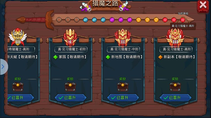 新手的话,完成关卡引导之后,积极完成猎魔之路