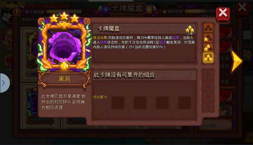 黑洞:全能神卡,吸怪,持续伤害(可联动自身和其他效果卡),清怪,搭配猛毒卡能辅助叠加猛毒状态