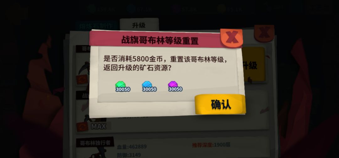 ●哥布林升满级矿石数量