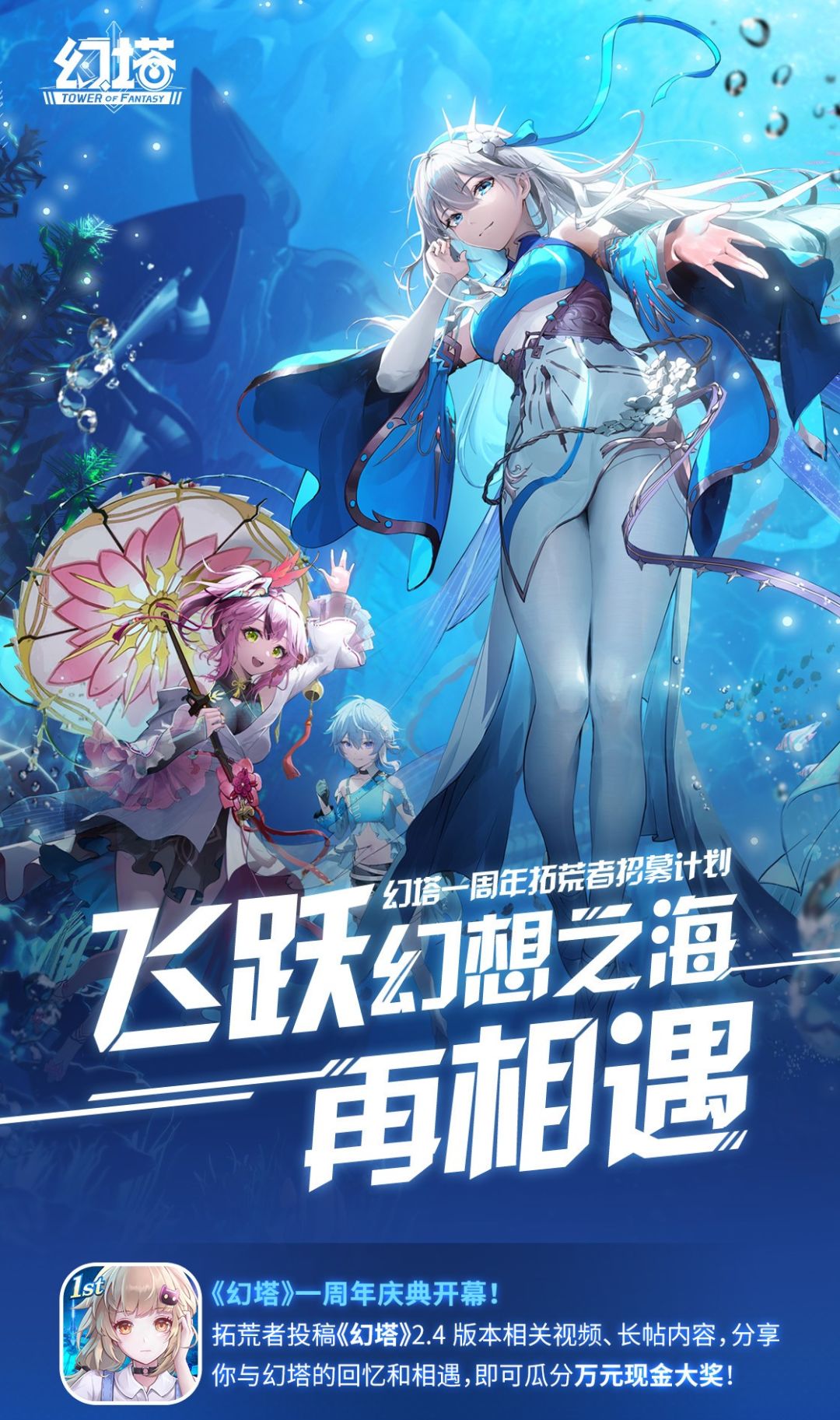 飞跃幻想之海再相遇,《幻塔》一周年庆典开幕!拓荒者投稿《幻塔》2.4版本相关视频、长贴内容,分享你与幻塔的回忆和相遇,即可瓜分万元现金大奖!