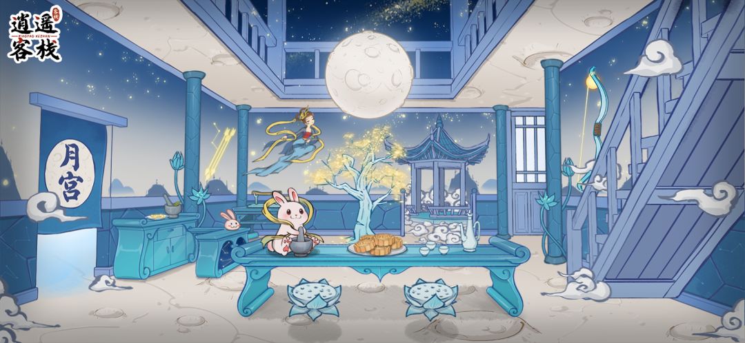 一年一度的中秋佳节即将来临!逍遥客栈在这里祝客官们阖家团圆!团团美美! 掌柜的预备了美味佳肴等待着客官们的品尝!逍遥客栈将带给诸位客官宛若家人一般的美好体验! 让我们开开心心的坐在屋顶看月亮,磕瓜子、吃糕点、喝清茶...