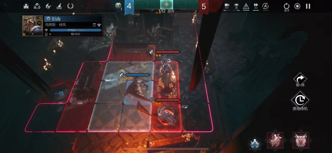 开局两个碰撞把上路两个站一起的坏撞死或者撞残,都可以,不一定非要秒杀,撞残也能过。然后统帅堵上路骑兵,巨山堵下路狂战士,放走弓箭手。然后靠火焰药和碰撞把剩下两个怪收掉就行。