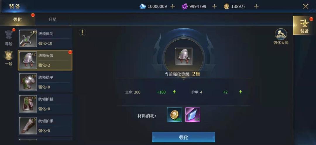 装备强化任务,可以消耗金币和强化水晶对装备进行强化。单一装备强化等级最高为10级。