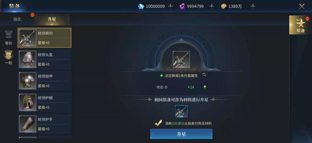装备升星任务,可以消耗不同数量的相同装备对装备进行升星。单一装备升星等级最高为5级。