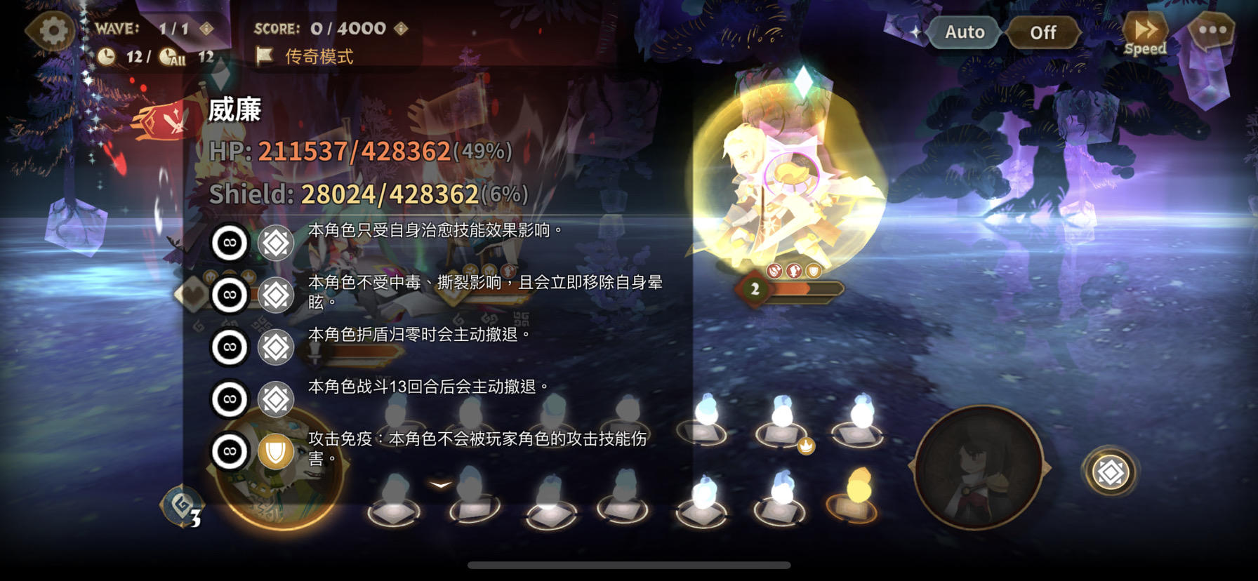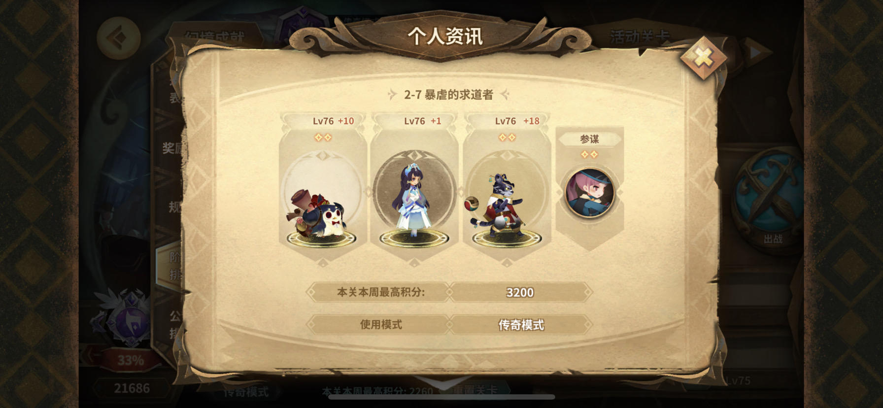 需要2-3次金4补伤害,尽量控威廉的盾如下图,练度不够靠肝来凑,再多打打sl小威全打迪兰sp估计还能提分。