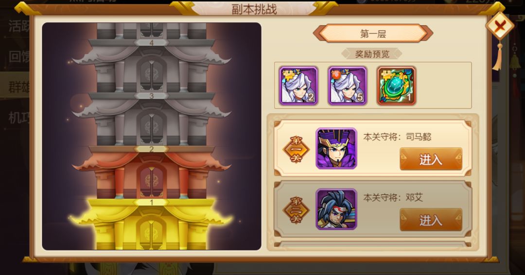活动简介:活动期间挑战活动副本,活动副本共有7层,每层4关。活动开启后,每日解锁一层可进行挑战,挑战成功即可获得过关奖励。
