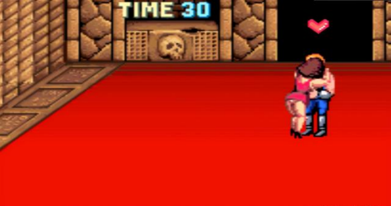 在这个画风硬朗的游戏里,玩家需要丢掉自己白领的人设去营救被反派抓走的女友,而直到最后一关,玩家才能见到被困在墙后面笼子里的女友。跨越种种困难后,玩家终于打败了最后的彪形大汉,救出了女主。可让人三观震碎的是,女主在被救出后不但没有感激,反而直接一拳打向了玩家。此时的女主已经完全没有了之前虚弱的模样,实力强劲的她一个人就撑起了最后一关。这也就意味着,在被关起来的这段日子里,其实女主已经爱上了BOSS,并在BOSS那里学到了很多格斗技巧。被关在笼子里观战的她表现出来的痛苦,现在看来也不是经受折磨,而是不忍看到BOSS被玩家捶打的画面。游戏到此才将完整的故事线展示给玩家,也让玩家明白自己舍命救出来的女友其实早就绿了自己。也不知这种硬朗的画风是不是拥有某种神秘的魔力,让类似的另一款游戏也有着相似的狗血设定,它就是《双截龙》。