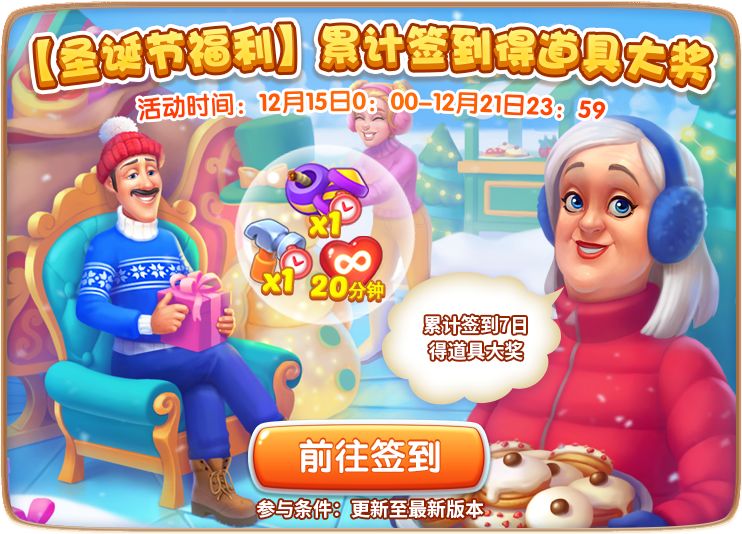 您的《梦幻家园》将于12月15日0:00-12月21日23:59 开启签到活动