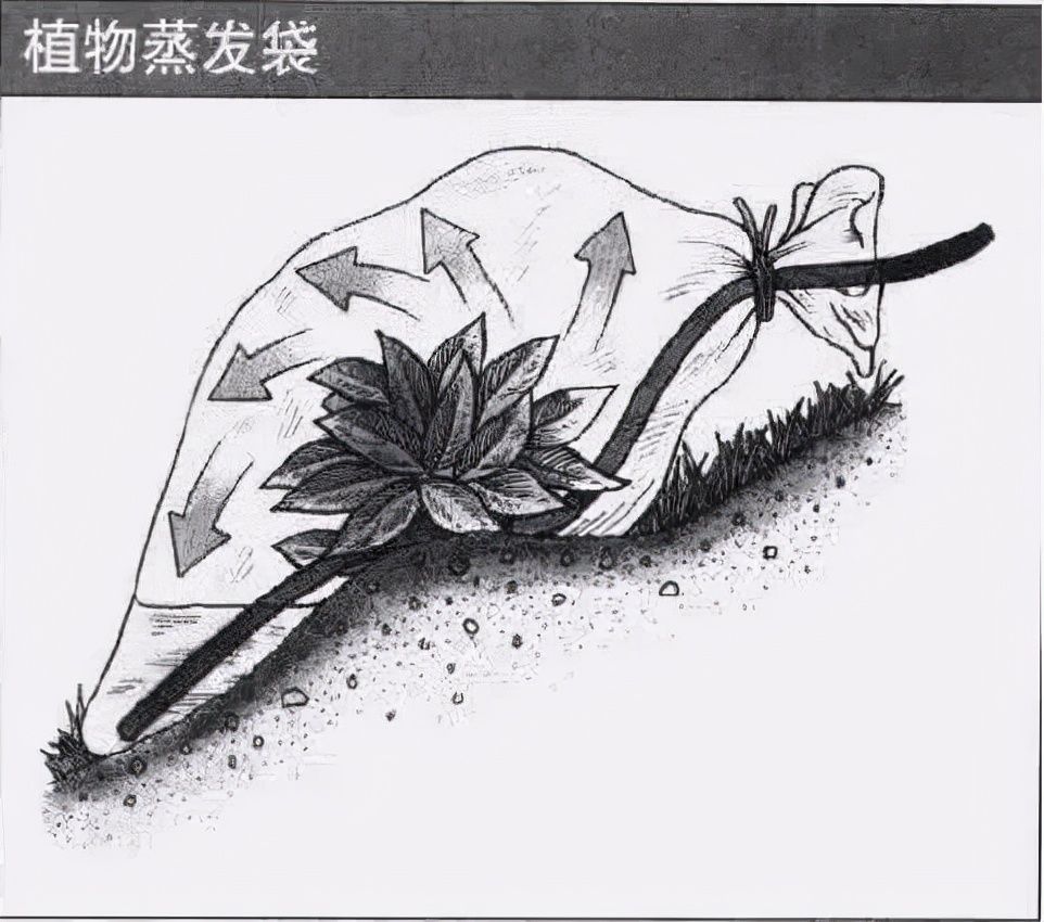 而植物凝结水是收集植物自身呼吸产生的水分,只需要在植物嫩条或新鲜砍断的枝叶外部套上塑料袋就可以完成。