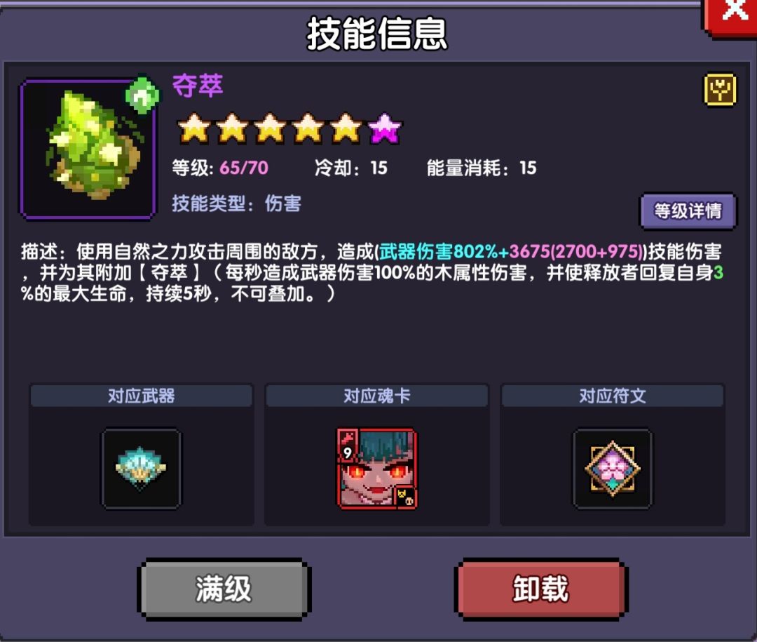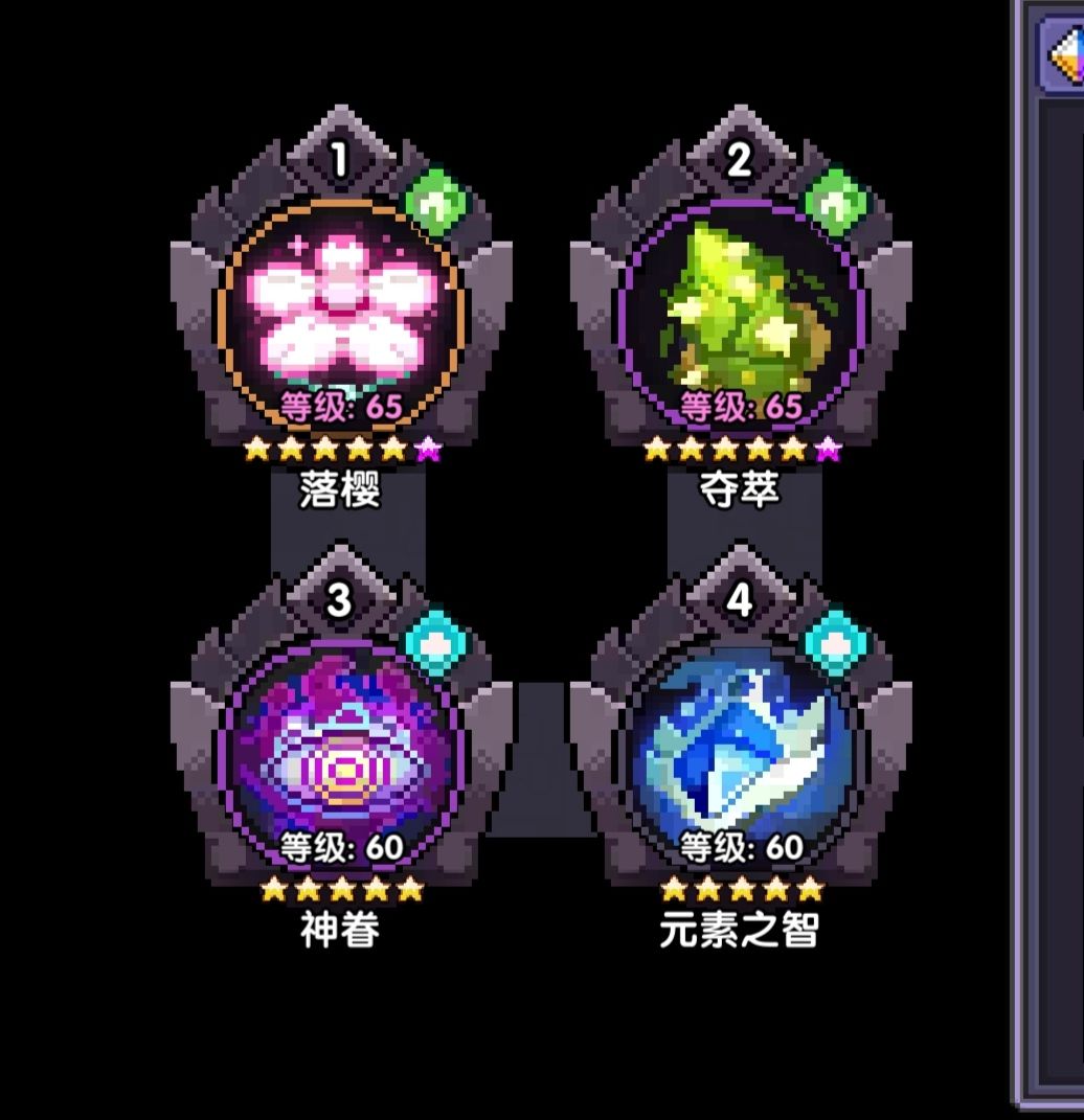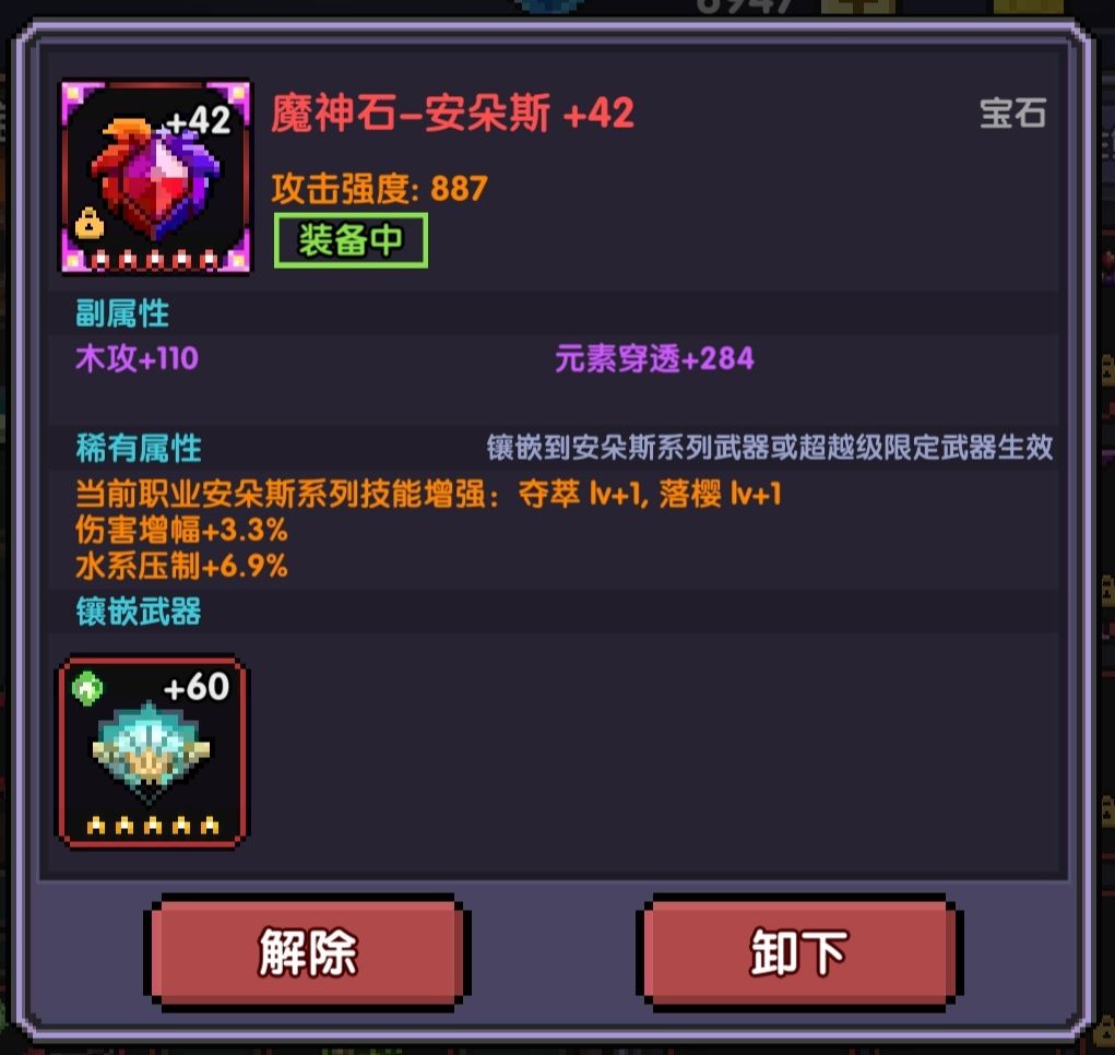 属性:爆伤,木攻,攻强,暴击,穿透(按照面板和关卡属性要求选择暴击,穿透)