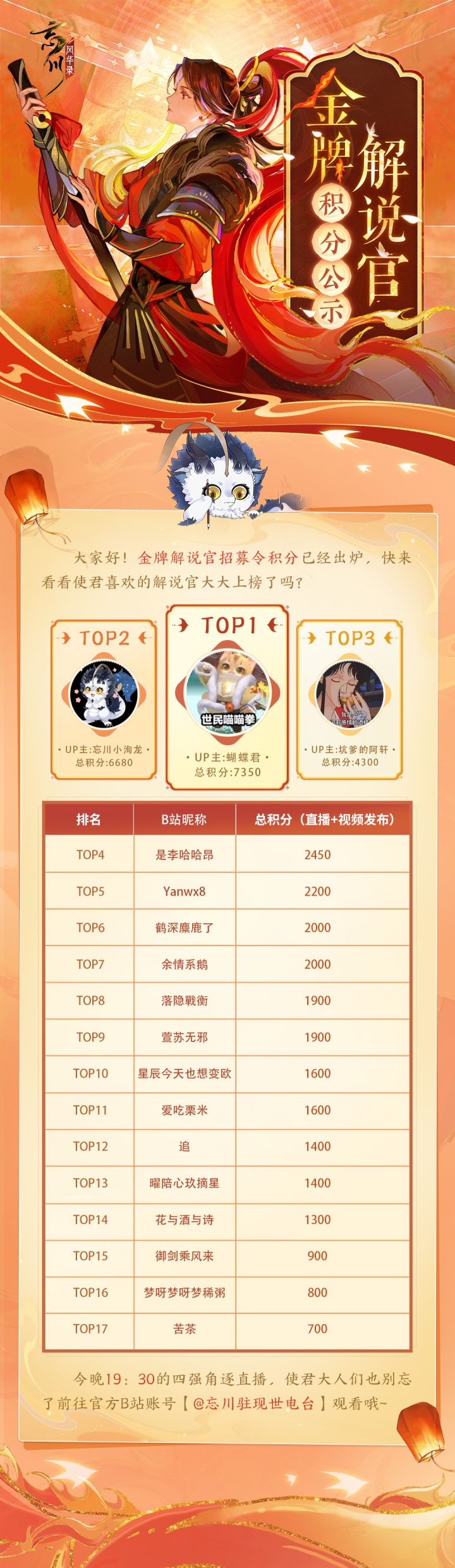 【#第五届金戈至尊# 金牌解说官积分公示】