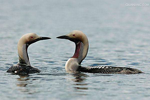 潜鸟目,Gaviiformes,指的是脊索动物门鸟纲下的一目,潜鸟目鸟类既擅长潜水又不失去飞翔能力,但在陆地上走路则很笨拙。腿部粗壮、脚趾上有很大的脚蹼,十分擅长游泳和潜水,它们又长又尖的嘴巴,很适合捕食小鱼虾。广泛分布于北方高纬度地区,冬季南迁。