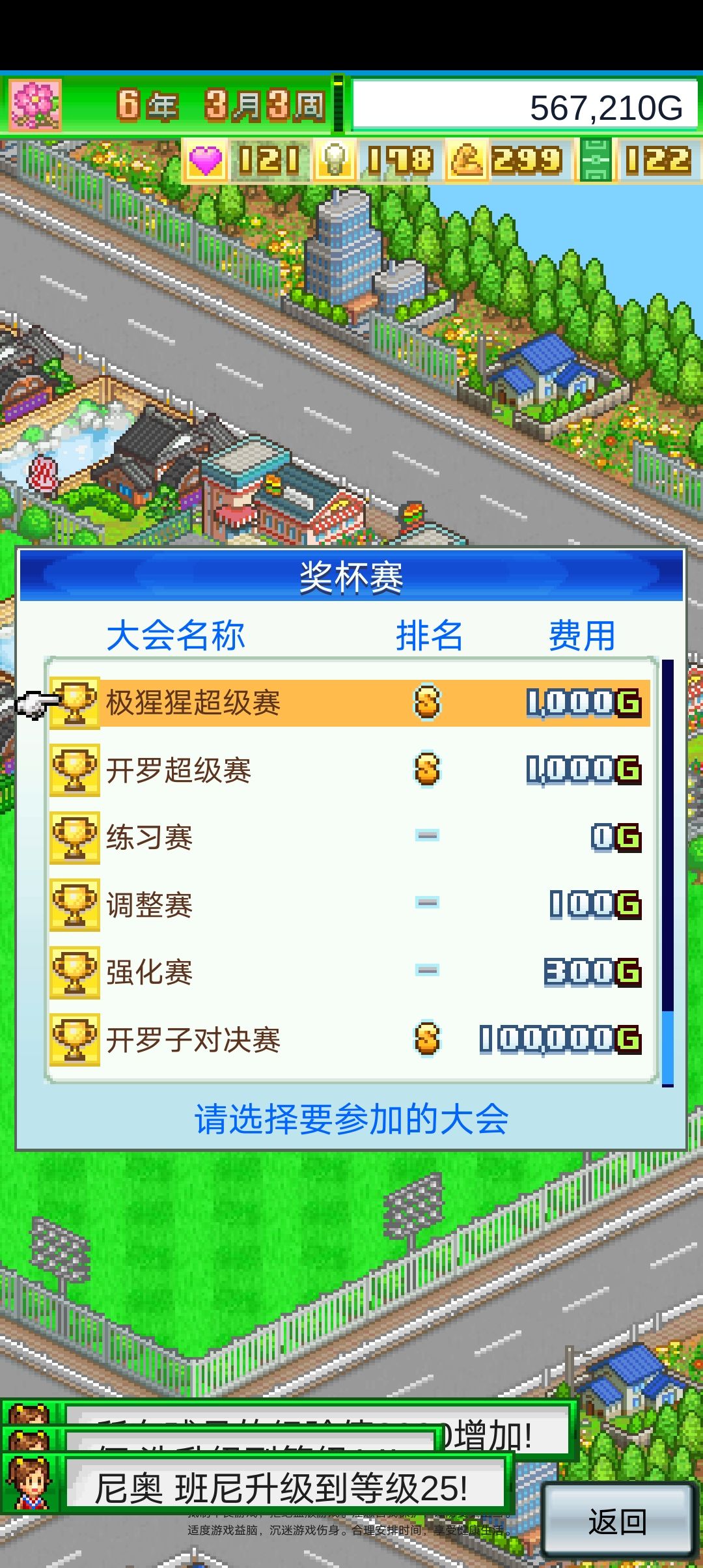 然后参加比赛,攒钱,注意每次比赛结束后,马上申请新的比赛,不要中断,否则极限攻略不成功。