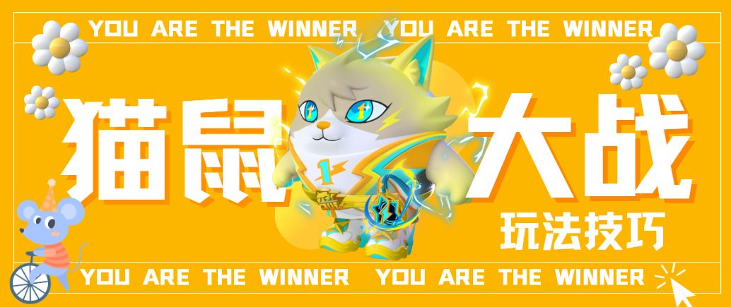 老鼠的获胜技巧:老鼠其实获胜难度还是蛮大的,对方人多势众的。建议不要漫无目的的乱跑乱跳,可以去一些四面空旷且高一点的位置,等着人来找你,然后躲飞扑,跳下去在转一圈回到原地。有道具一定要捡,任何有移位的道具都能帮助你快速移动躲避。新手还可以一直在最外圈跑耗时间就行,只要拖到时间就获胜了!