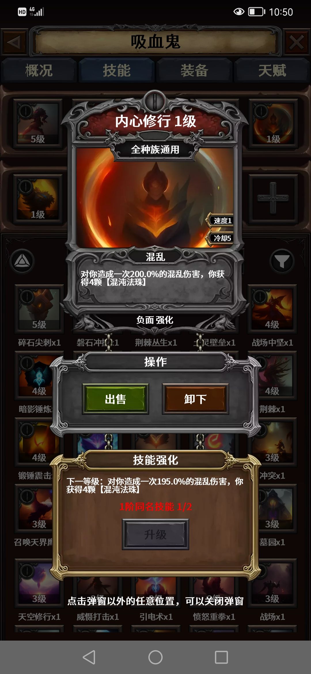 利用混乱系的内心修行主动扣血,吸血鬼天赋血之王剑快速推图