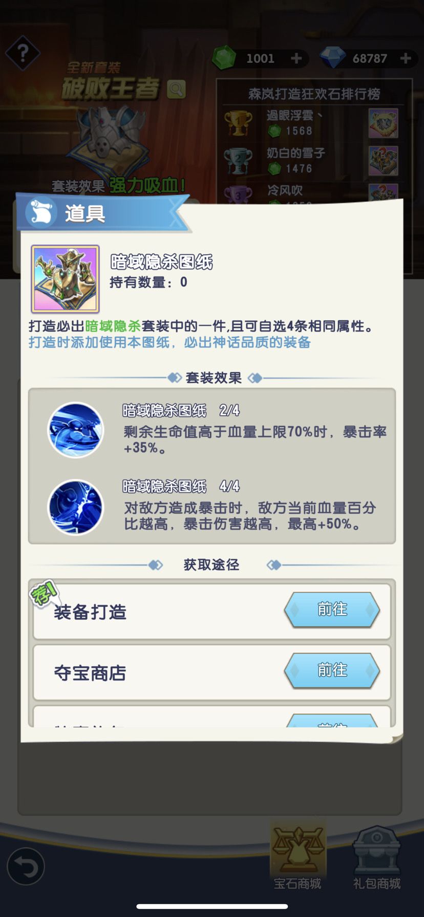 高暴击刺客建议穿4件套