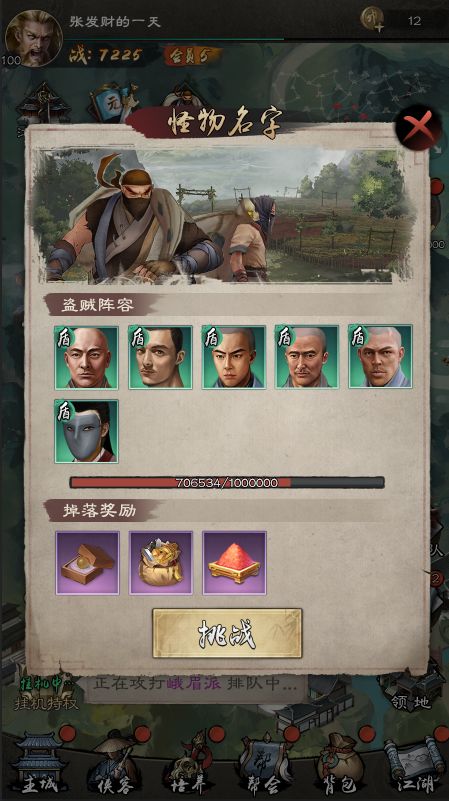 每次对盗贼发起挑战,需消耗一枚江湖令; 当少主对怪物发起挑战时,伤害即时结算; 如果少主的伤害未能直接击杀盗贼时(发起挑战的少主画面停留在战斗过程中),此时其他少主也可对此盗贼发起挑战;
