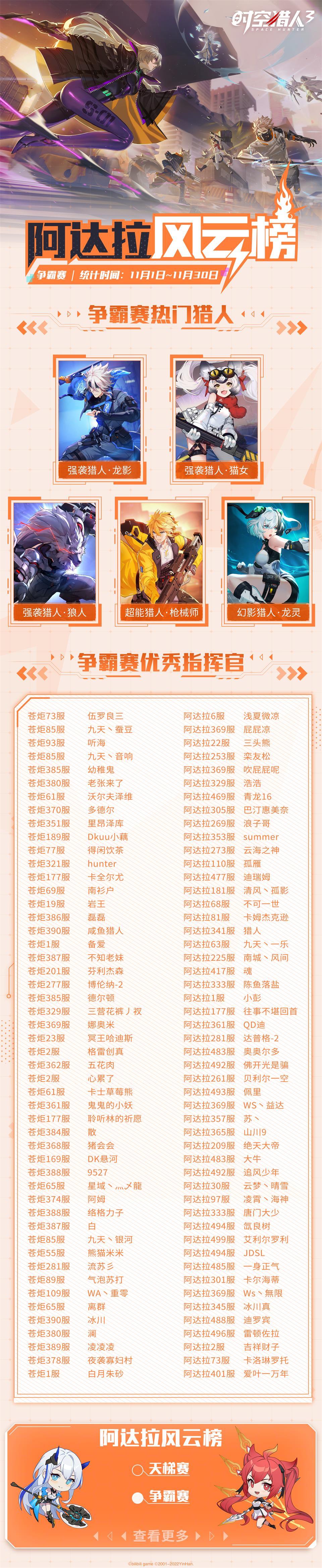 【阿达拉风云榜】 11月热门猎人与优秀指挥官揭晓!(内含福利兑换码)
