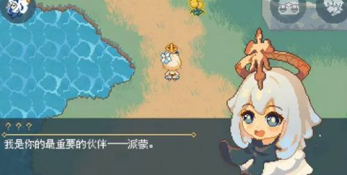 玩家进入游戏后,左下角为操作移动杆,右下角为攻击和技能。左上角的像素派蒙可以调整时间,会让游戏内的场景、特定人物产生一些变化。右上角的背包里有相应的材料,或许后续版本会有用得到的地方。在像素的七天神像处可以前往各个地方,你可以找你熟悉的NPC,也可以在稻妻进行闲游。
