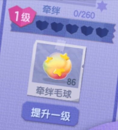猫咪的天赋等级一共分为5级,从1级到5级需要的羁绊值由少到多;增加羁绊值的具体方法是和岛民互动得到玩具后,撸猫时给猫咪耍玩具就可以获得牵绊毛球!当然每天抚摸5次猫也可以获得!