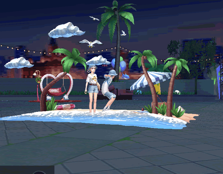 而另一款动作饰品【乘风破浪】的外表为一只飞起游动的小鲨鱼,饰品特效开启后,沙滩美景瞬间如魔法般出现,人物在翠绿的椰树和飞翔的海鸥之间尽情舞动,整体舒适明朗~快穿戴上这款饰品,前往温泉广场和小伙伴一起快乐尬舞吧!