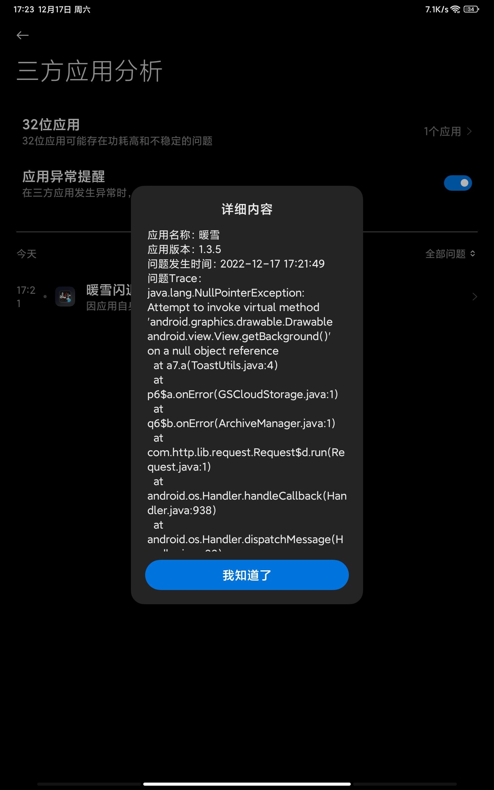 暖雪平板闪退问题