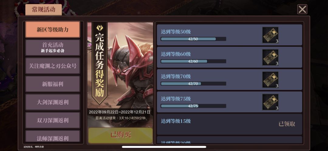 3.深渊15层的活动 30元一个职业达到15层可以领取10张