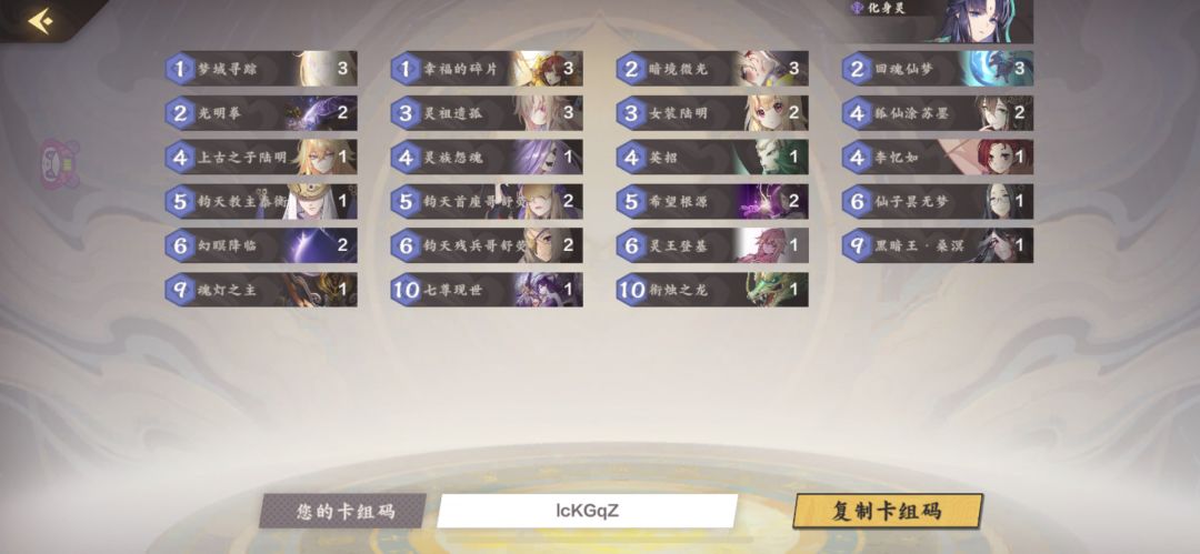 被凌佬虐了一把后,重试化身灵卡组,玩了几天了,很好玩,强度很高,能快能慢,之前推荐过化身灵,随着更新和平衡,卡组也有了更新,卡组如下,喜欢的可以试试。