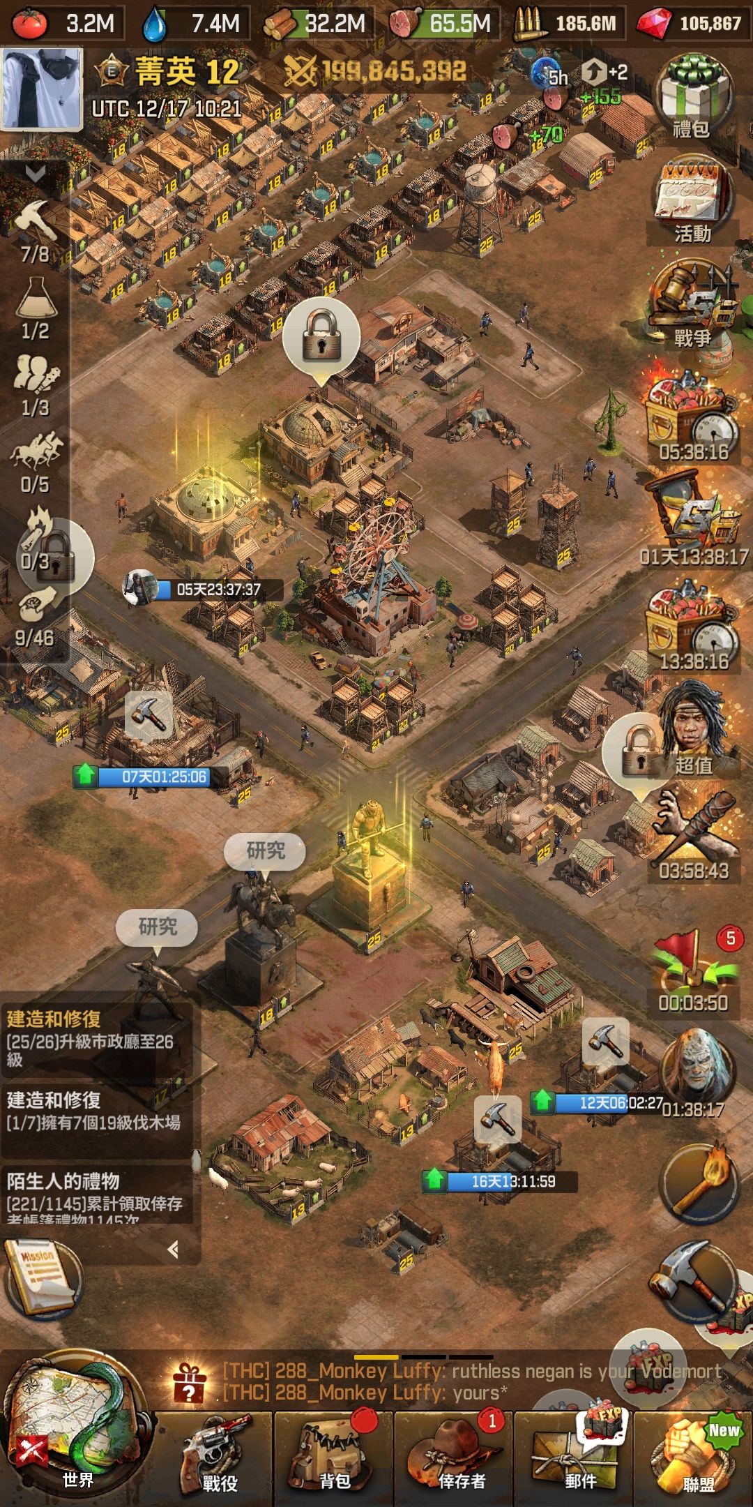 怎么说呢,突然看到这里还有这个游戏的板块,忍不住来说几句 我玩了快两年了,应该是前几批的玩家,最早在284,后面跳到288,是个没有明确国家划分的服务器,至于现在S6了,几个服务器合大区了,目前20005区。