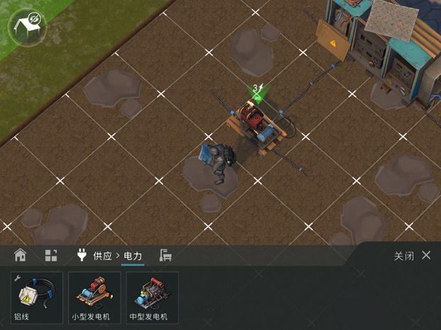 发电机摆这里 从左上角开始数横着三个 数着三个,请不要不要照图摆放任何电线!!! 小型发电机消耗10根电线