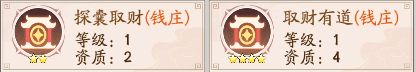 探囊取财和取财有道都是增加钱庄赚速的资质。这里的星级倍数是6倍,没有5星或5星以上的资质所有委派钱庄是不会在额外增加倍数。时迁派遣钱庄和驿站都是一样的倍数的。