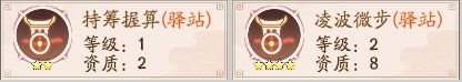 持筹握算和凌波微步都是增加驿站赚速的资质,这里的星级倍数是6倍,没有5星或5星以上的资质所有委派驿站不会在额外增加倍数。