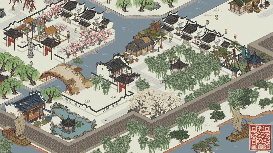 建筑:戏台,湖心亭,书院,凉亭,餐馆,私人花园,油树林,木炭摊,竹若干,松树若干