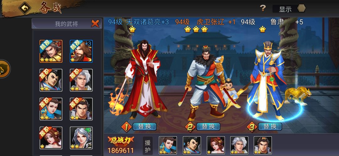 建议放在切将位,排位最强搭配张春华和鲁肃,张春华命中之后也是具有两个切将的选择,所不同的是,切出虎卫张辽之后不会受到对方张春华技2的威胁;副本则可以尝试替换张春华,目前无双诸葛亮和鲁肃在副本已经非常够用。