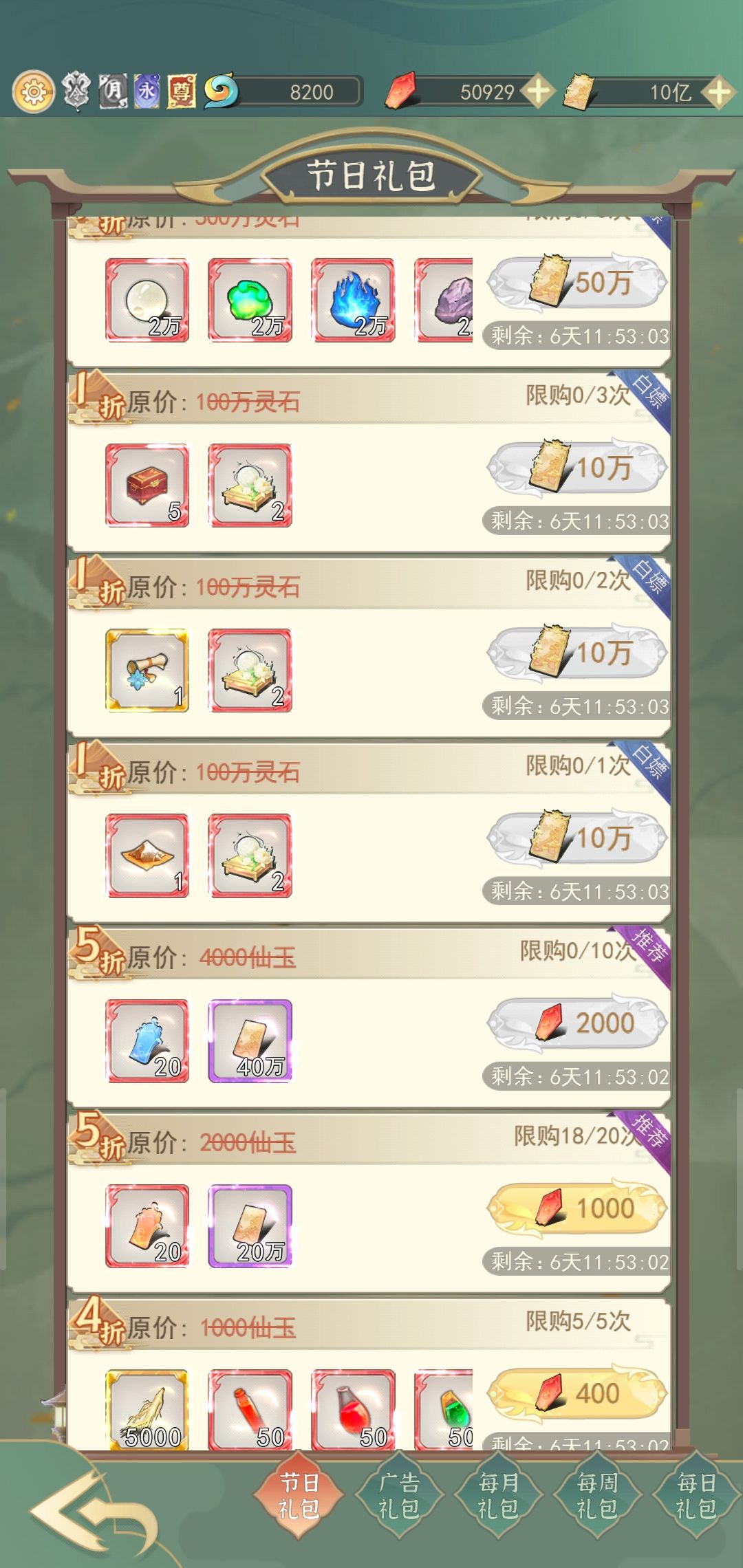 还有就是主页福利小狮子那,每天领取和每周领取,还有就是每个节日活动周期内可以买较大的福利礼包,买全部灵石礼包,仙玉礼包礼挑重要的买