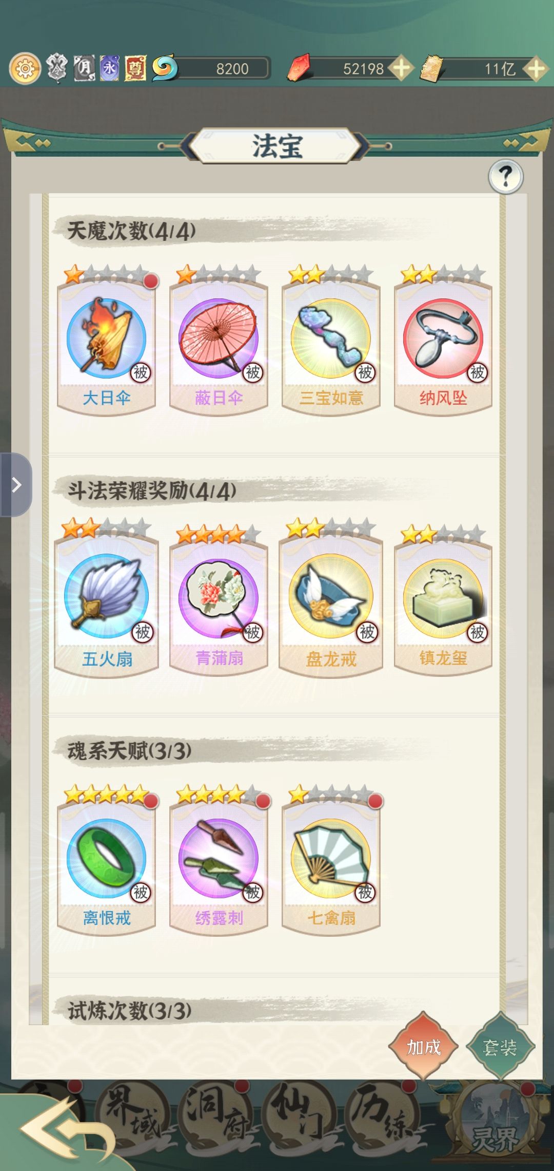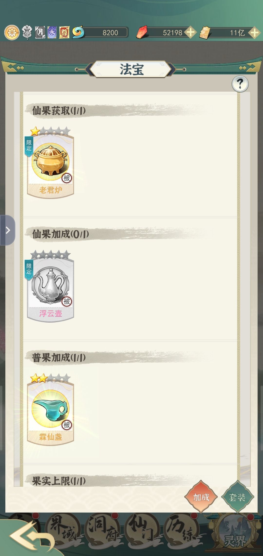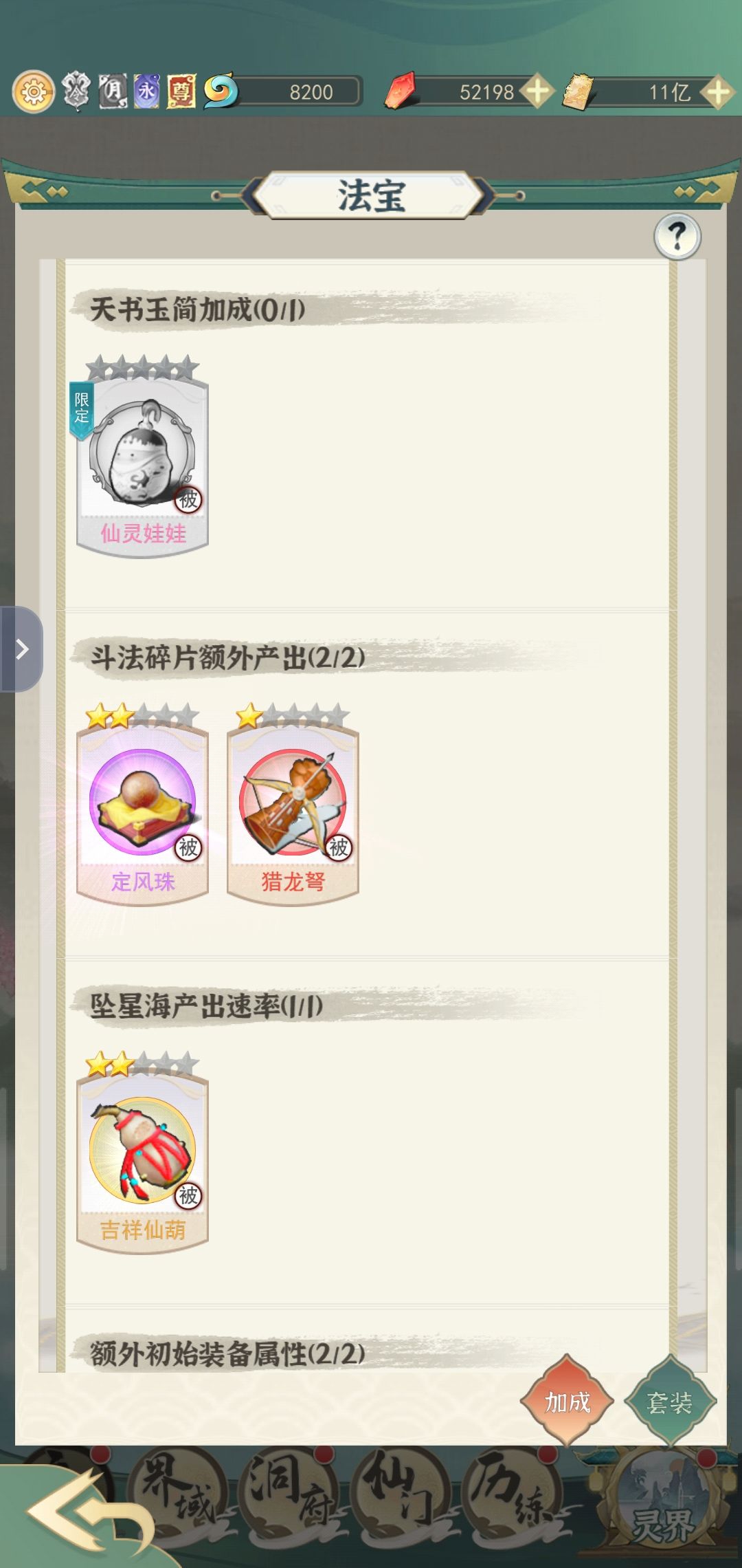 法宝最重要的就是两部分,一部分增加实力,就是提升果实效果和果实数量,另一部分就是增加万能碎片数量,毕竟不氪的话买娃娃还是要靠碎片,这些法宝如果能购买的话优先