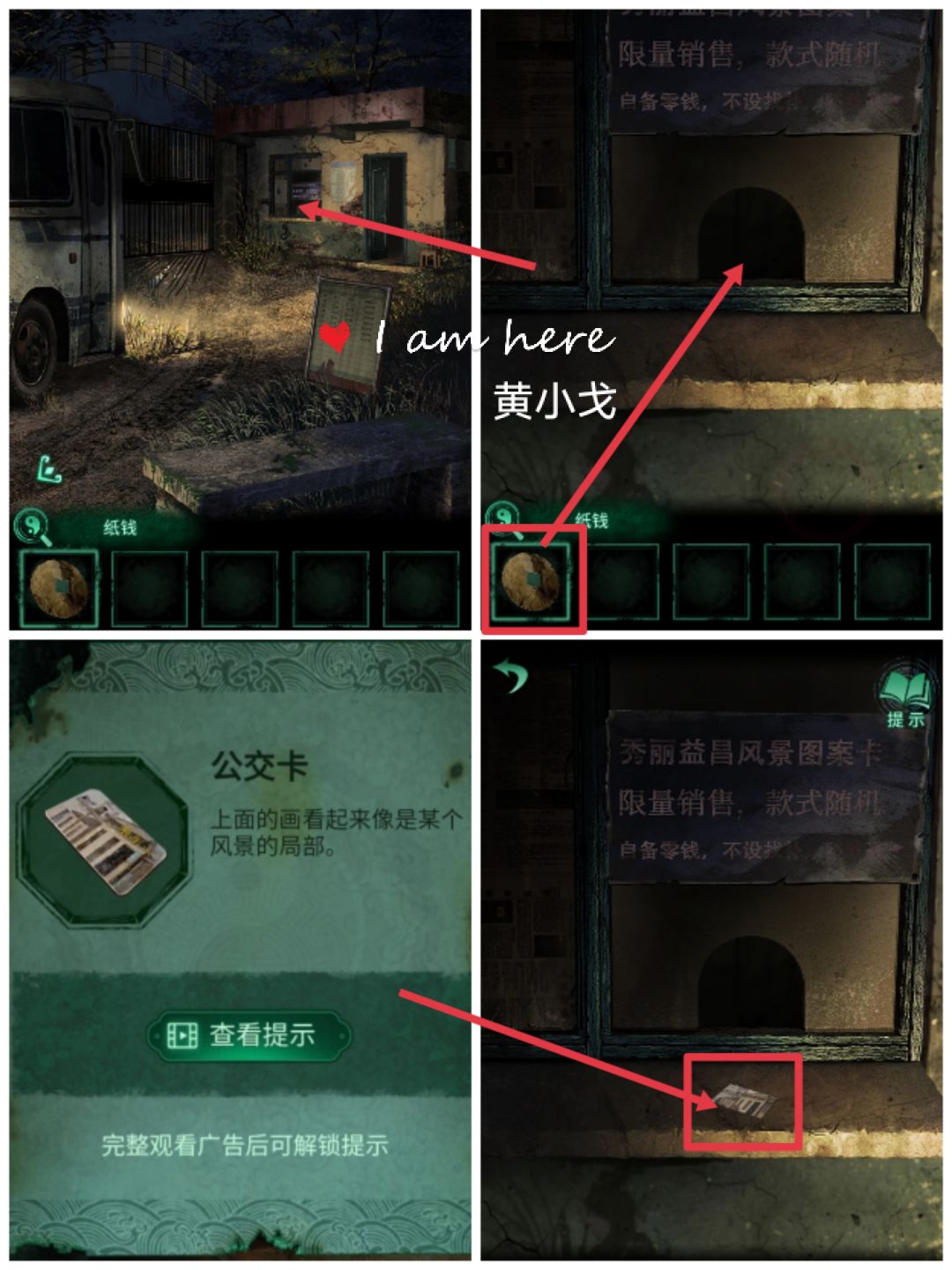 22.(值班室外)往售票窗口递【纸钱】,获得【公交卡】