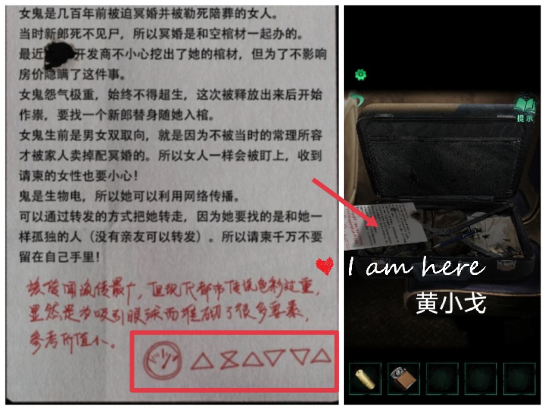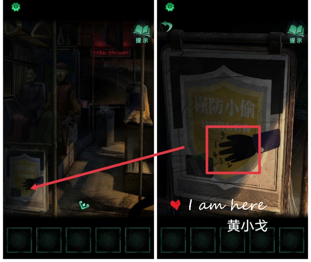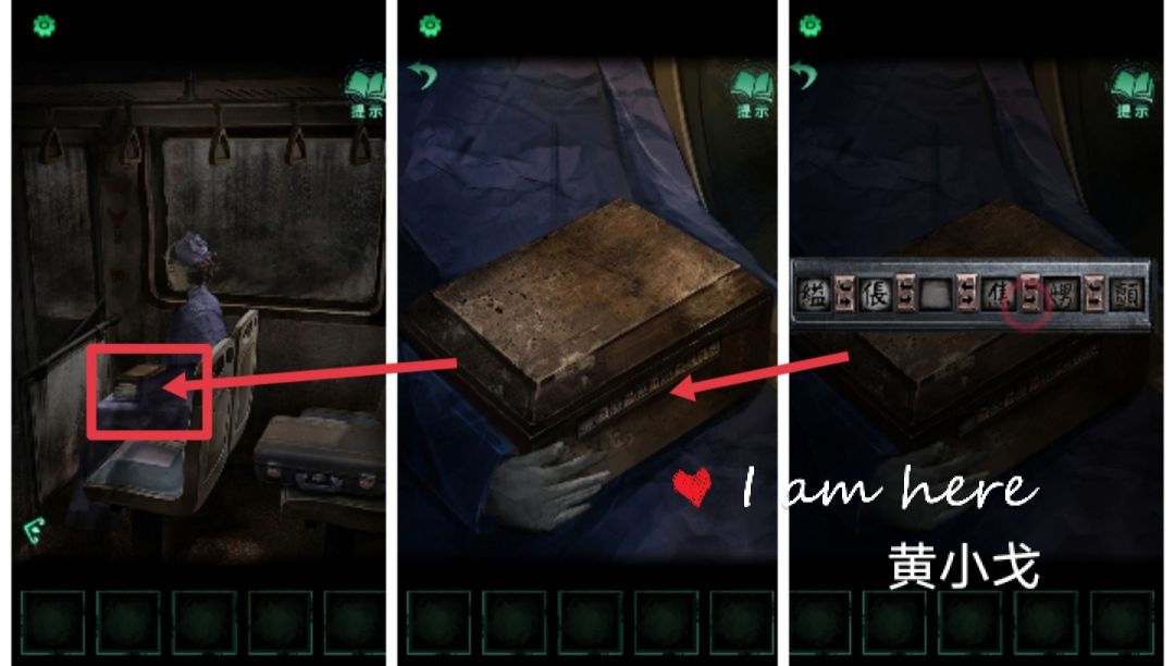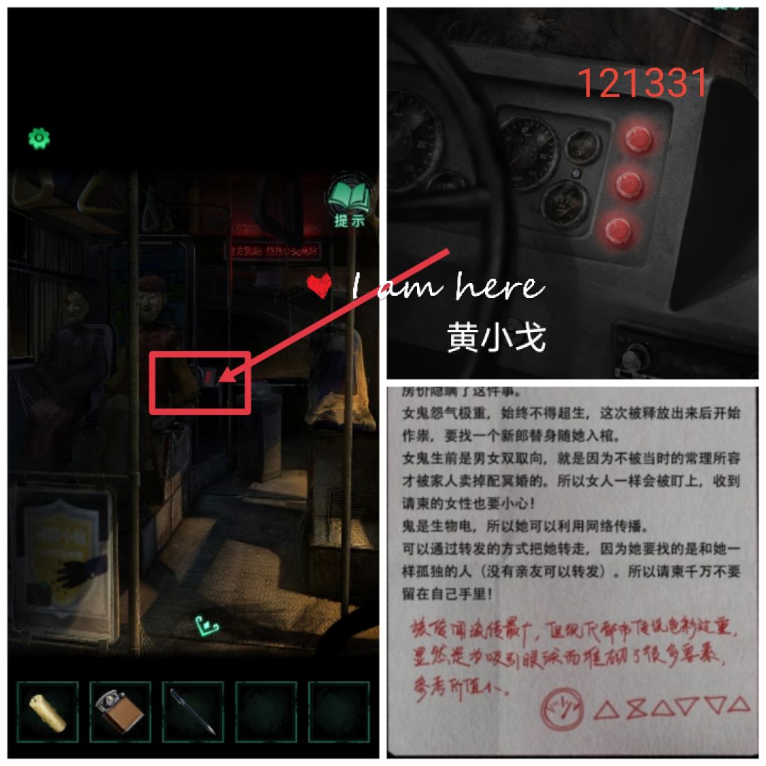 7.(公交车后座)点击女纸人手上的盒子,根据显示屏上的信息,输入密码:縊倀 空白 焦娚颤,打开盒子