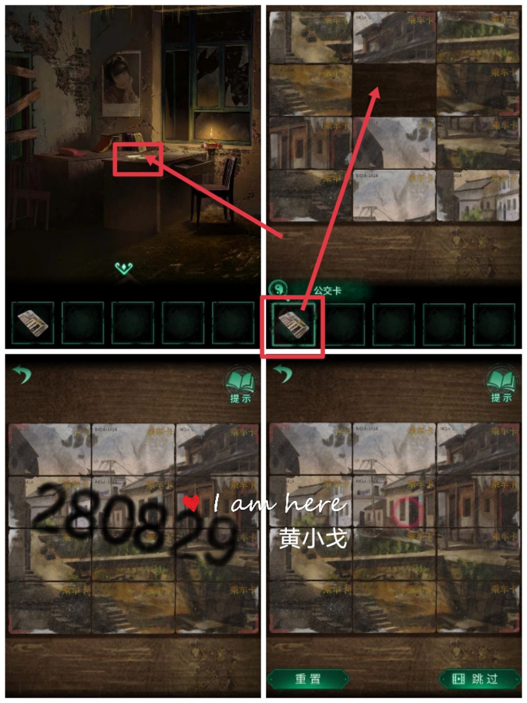23.(值班室)点击桌子上,放入【公交卡】,完成拼图小游戏,得到密码:280829