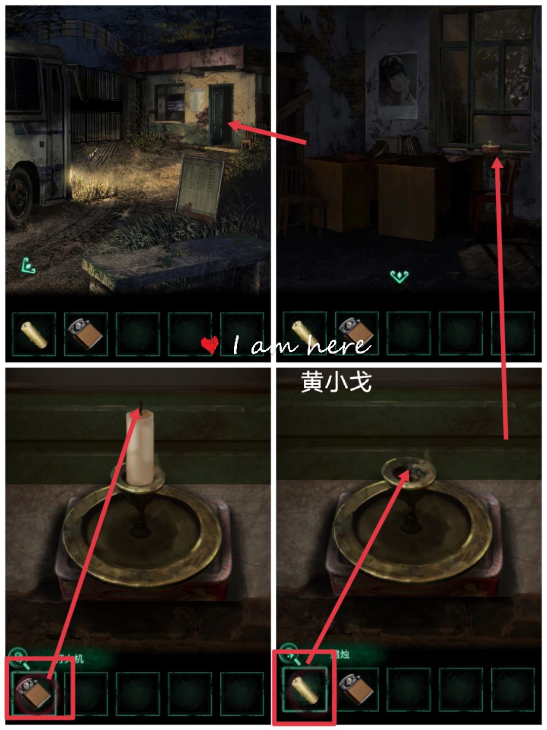 19.(值班室)点击蜡烛烛台,放入【蜡烛】,用【打火机】点燃蜡烛