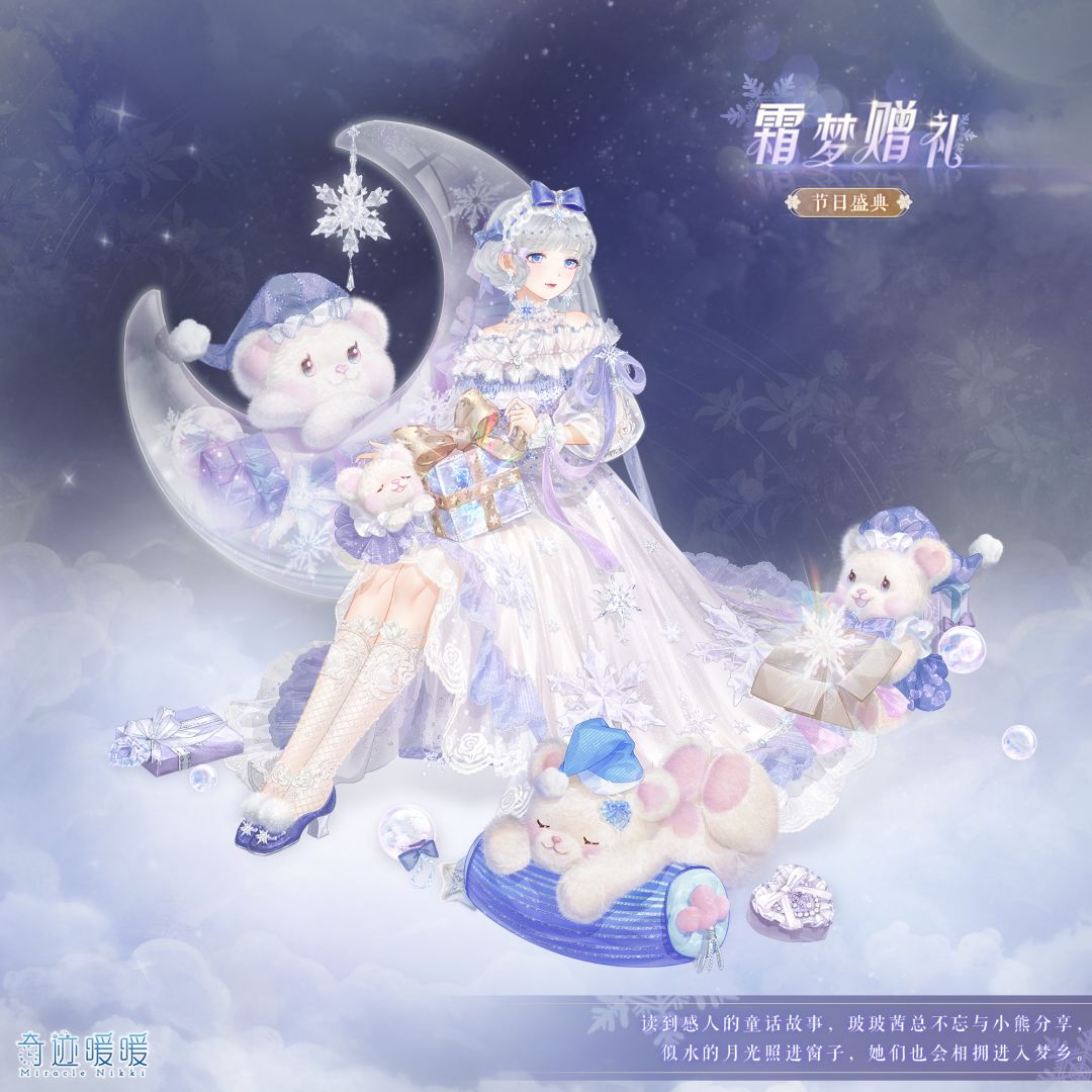 【霜梦赠礼】含正常姿势与特殊姿势,全新妆容“酣梦好眠”,精美可移动摆件“温柔相依”、“甜香梦呓”、“美梦惊喜”、“琉月柔辉”。